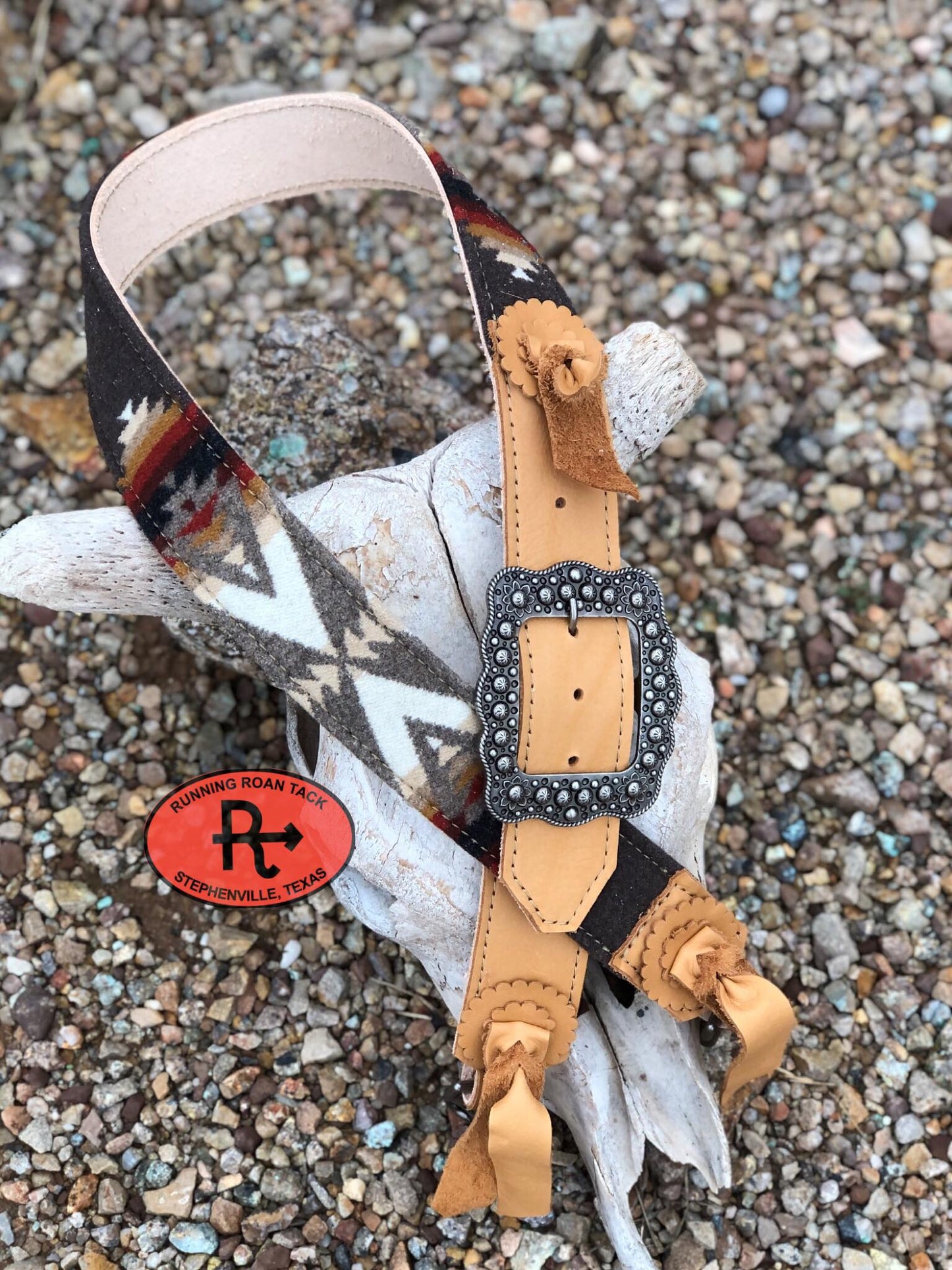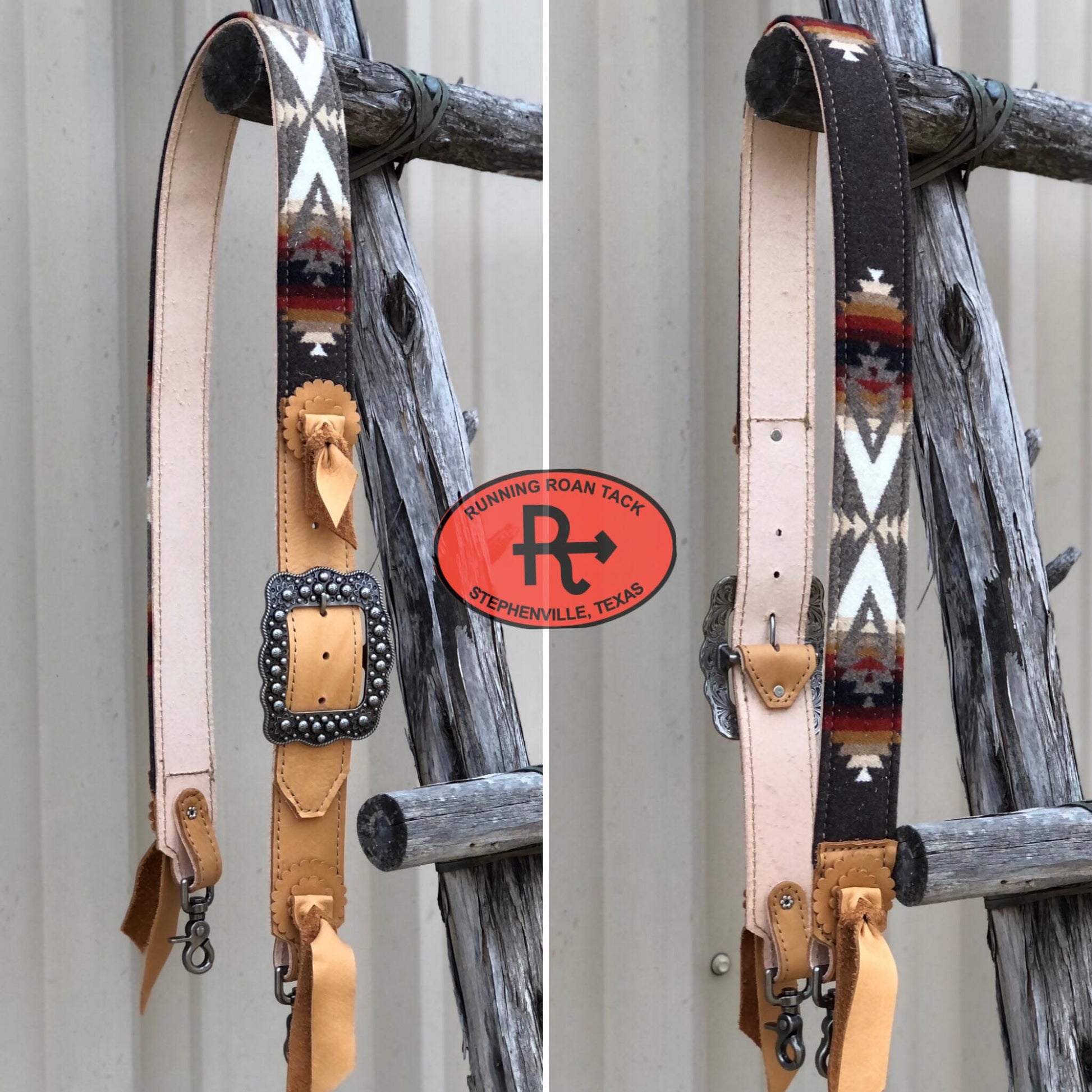 Adjustable length strap for handbags, rope cans, computer bags, camera bags... anything you can clip this strap on to! Lined with roughout vegetable tanned leather to give the strength to support a heavy bag and the durability to give you many years of service. The roughout lining helps keep this strap from sliding off your shoulder. Genuine Pendleton® wool overlay is tucked in and properly finished for a tidy, no fray finish. Heavy duty trigger snaps make it easy to attach this strap to whatever you want. Leather blood knot ties at snaps. Strap is 2" wide. Strap adjusts from about 47"-51", making this strap suitable as a cross body or shoulder bag.