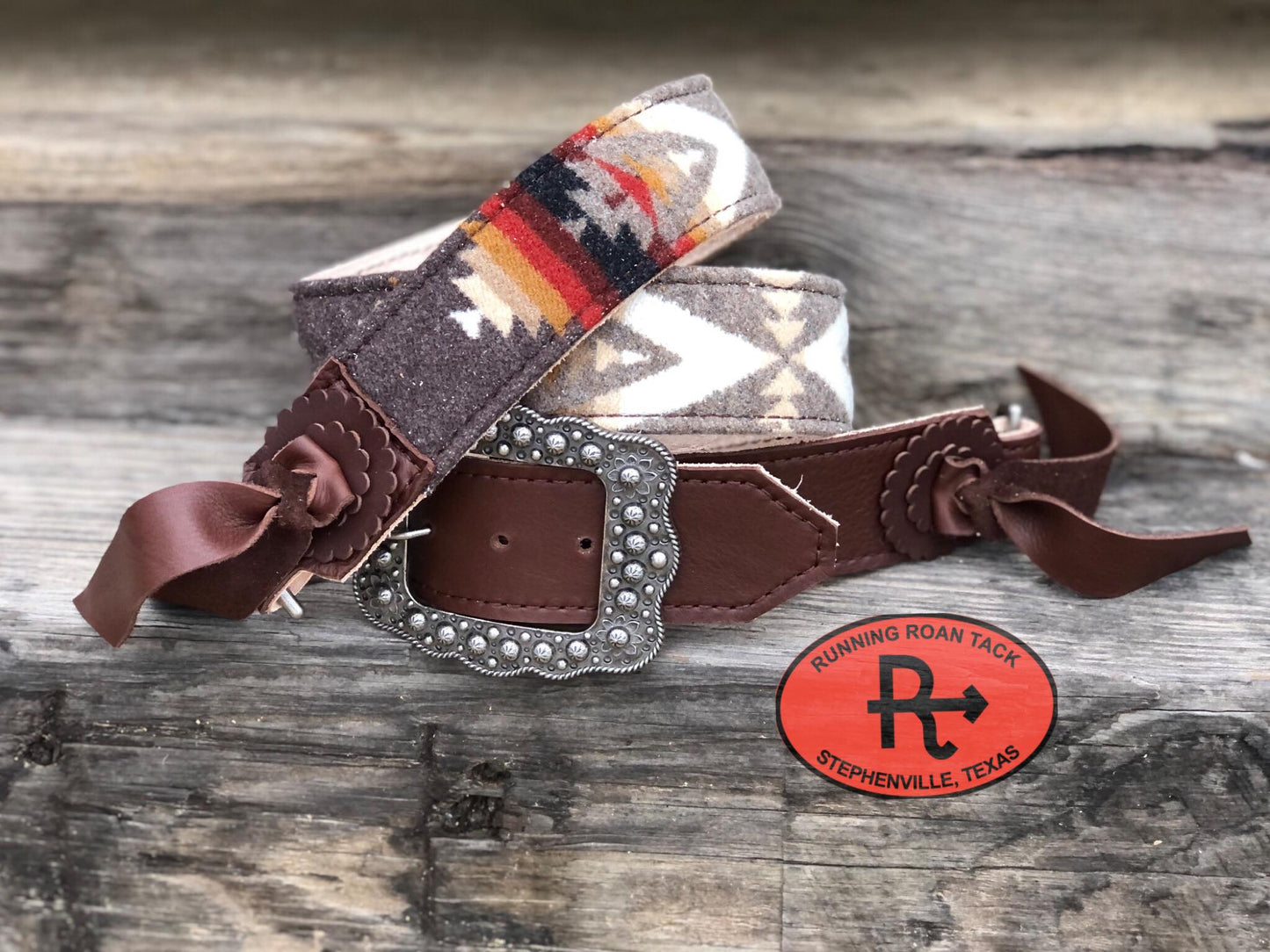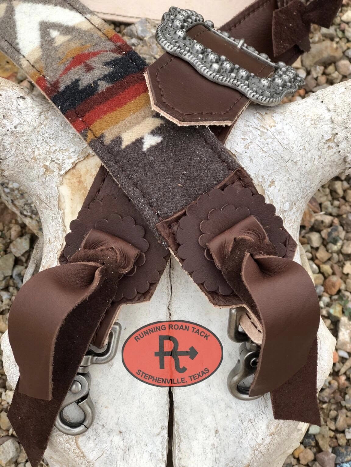 Adjustable length strap for handbags, rope cans, computer bags, camera bags... anything you can clip this strap on to! Lined with roughout vegetable tanned leather to give the strength to support a heavy bag and the durability to give you many years of service. The roughout lining helps keep this strap from sliding off your shoulder. Genuine Pendleton® wool overlay is tucked in and properly finished for a tidy, no fray finish. Heavy duty trigger snaps make it easy to attach this strap to whatever you want. Leather blood knot ties at snaps. Strap is 2" wide. Strap adjusts from about 47"-51", making this strap suitable as a cross body or shoulder bag.