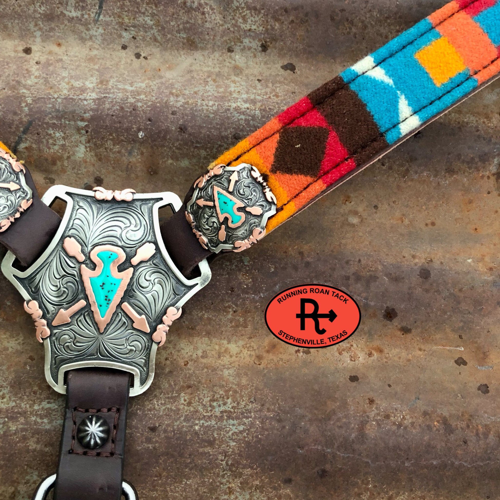 Breast Collar with Condensed Turquoise Wool and German Silver Arrows