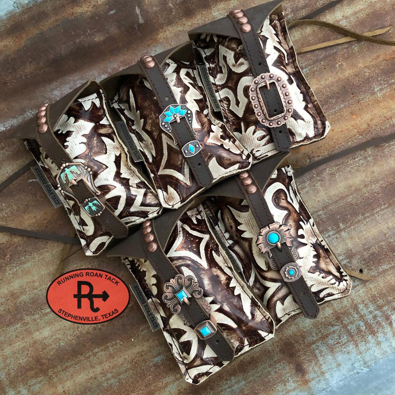 You have chosen Cocoa Boot Top as the hide you would like. Now choose the buckle you would like from the options list. You can see all the buckle options at one convenient page at this link: https://runningroantack.com/pages/buckles-conchos (opens in new tab/screen). Then indicate if you would like rustic brown fringe on the sides of the bag. We make these bags by hand, from scratch in our workshop in rural Stephenville, TX.