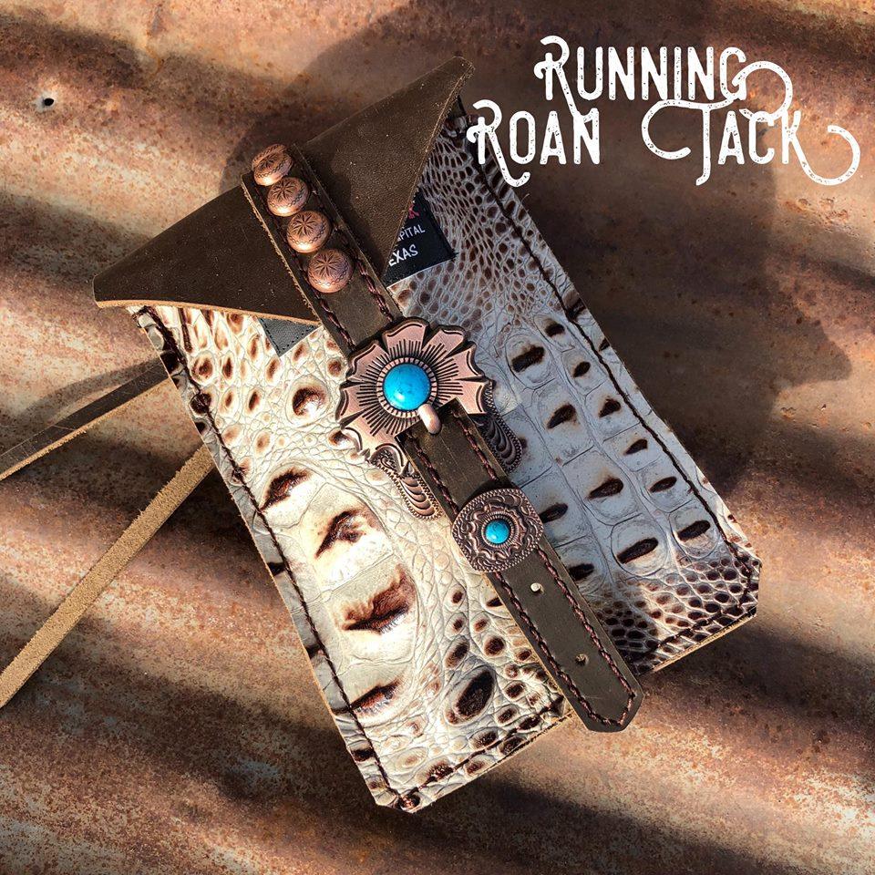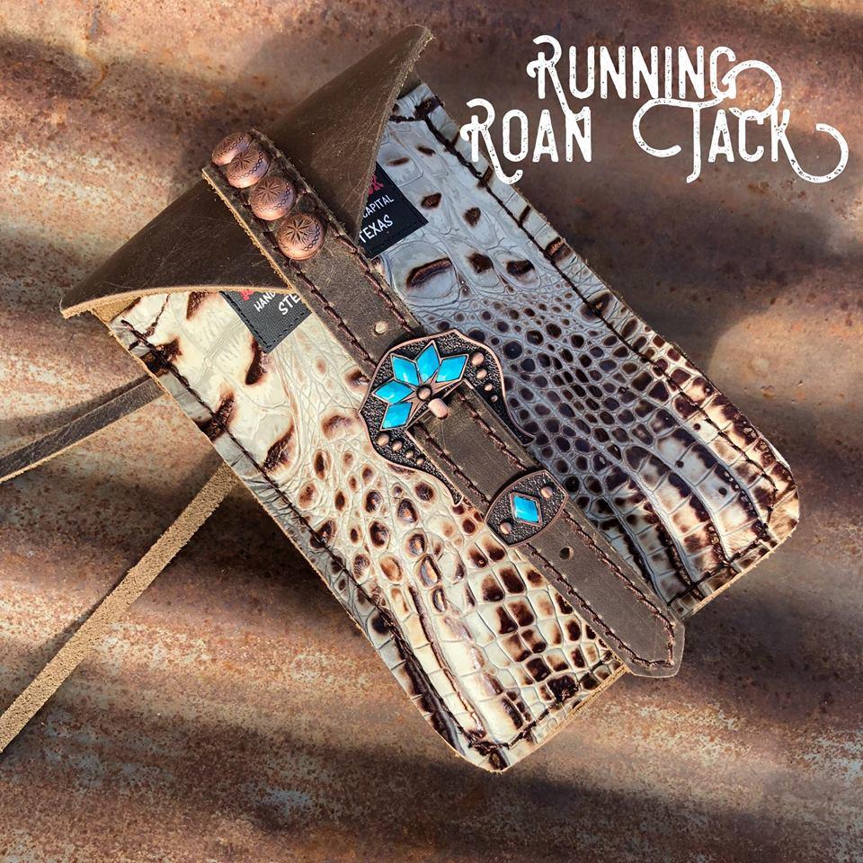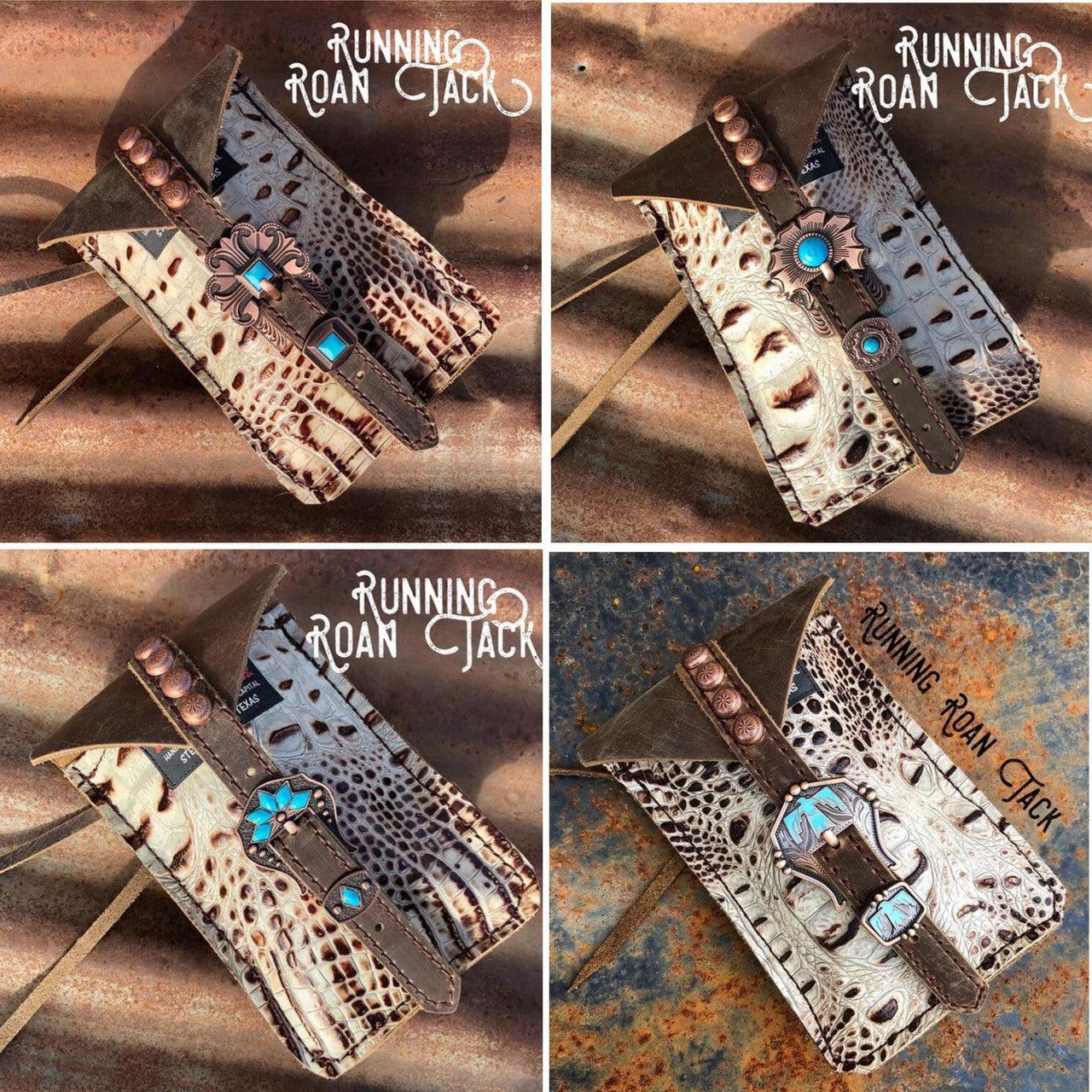 You have chosen Copper Tipped Croc as the hide you would like. Now choose the buckle you would like from the options list. You can see all the buckle options at one convenient page at this link: https://runningroantack.com/pages/buckles-conchos (opens in new tab/screen). Then indicate if you would like rustic brown fringe on the sides of the bag. We make these bags by hand, from scratch in our workshop in rural Stephenville, TX.