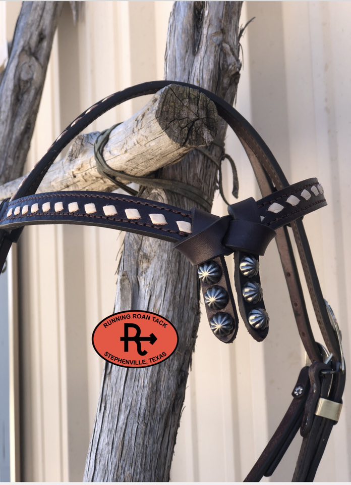 Futurity Knot Browband Ring Headstall with White Buckstitch and German Silver Feather Hardware 38"-42"