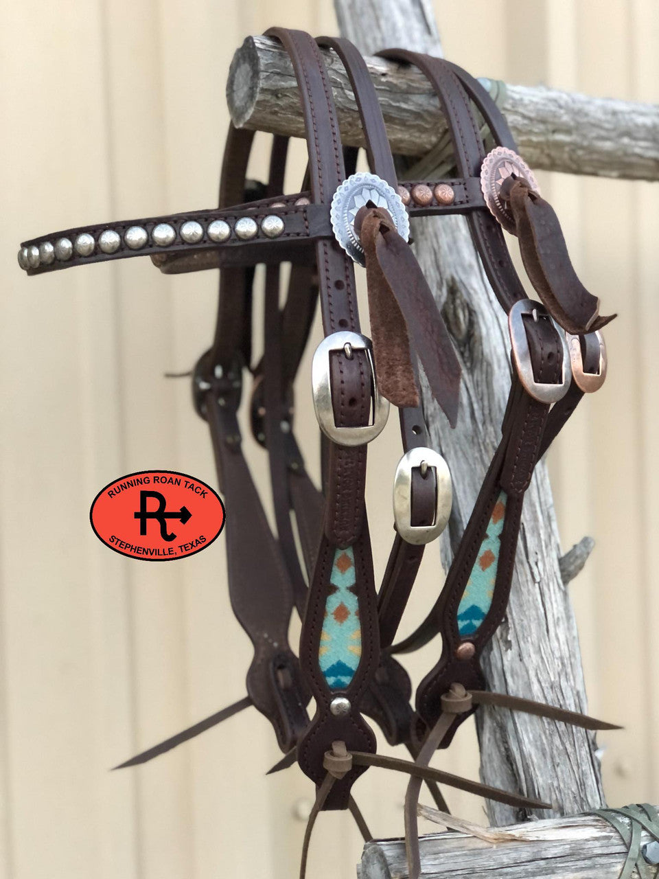 "Rancho Arroyo Aqua" Wool Browband Headstall with Slotted Sedona Conchos 36"-43"