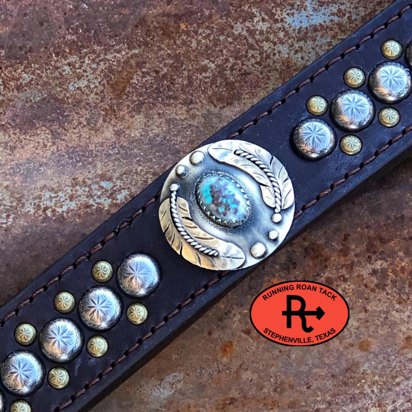 Ring Breast Collar with German Silver Feather and Turquoise Conchos