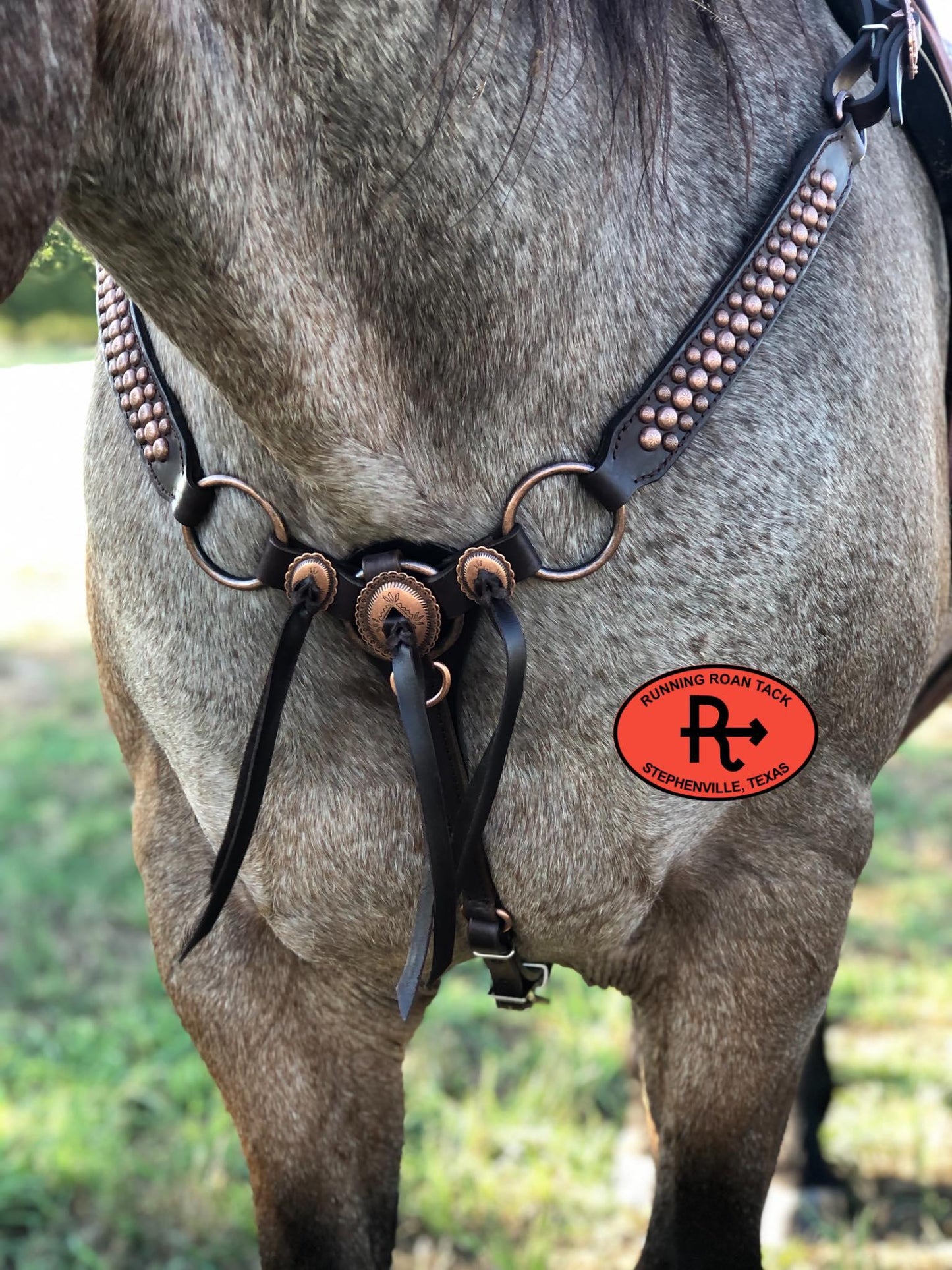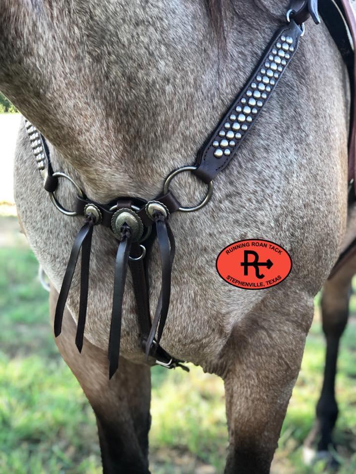 SIZING INFORMATION: This breast collar is standard horse size. This size works well with most performance horses. It measures approximately 35" from saddle tug dee to saddle tug dee. The saddle tug straps each adjust from 9" to 12' with existing holes. To determine if this breast collar will fit your horse, we highly recommend measuring your existing breast collar and comparing that measurement with the measurements provided. It does take some effort on your part to measure your horse, but that will ensure that you order the correct size. More detailed information about sizing is available at this link: https://runningroantack.com/pages/sizing (opens in new tab/window)