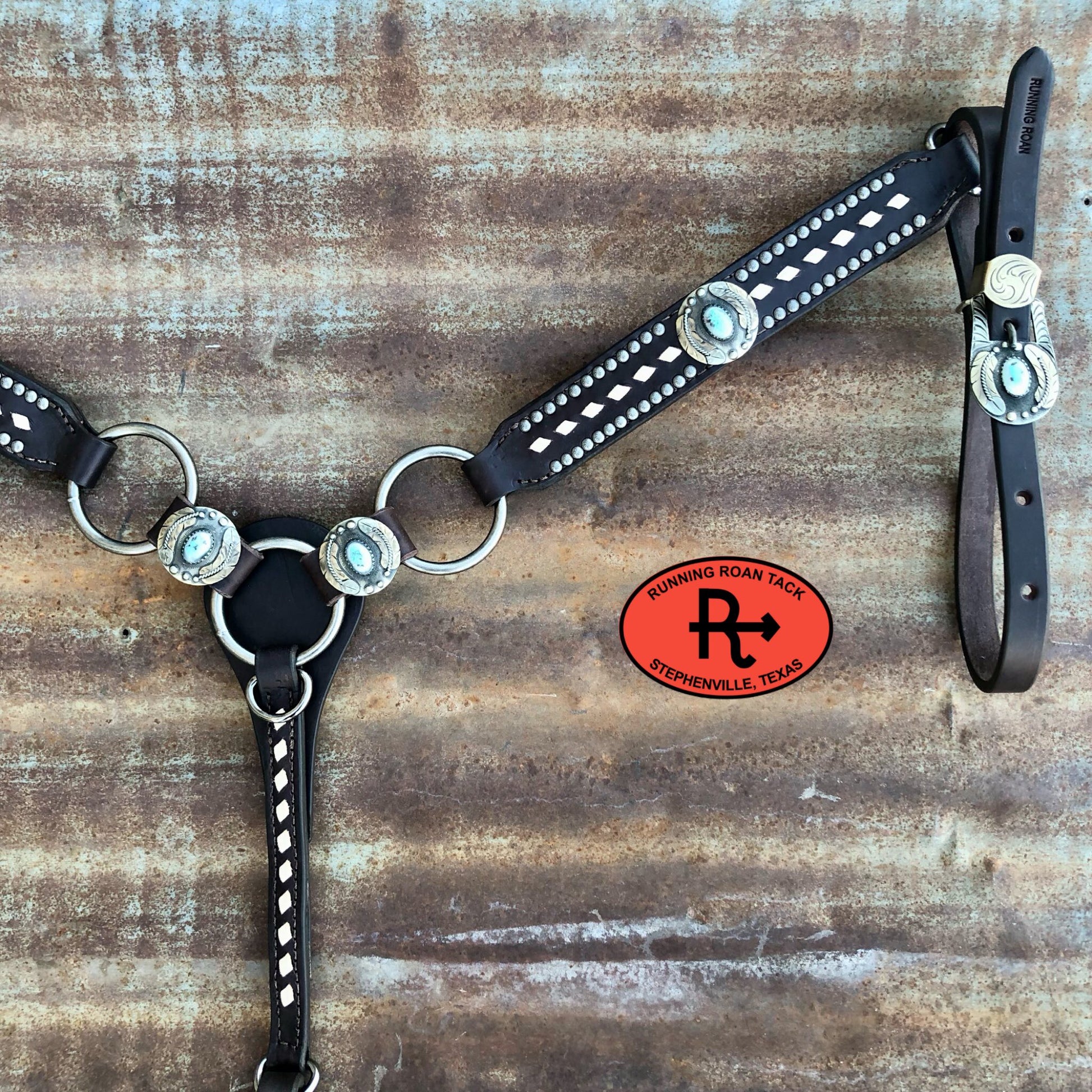 Ring Breast Collar with White Buckstitch and German Silver Turquoise Conchos Breastcollar12012025-01