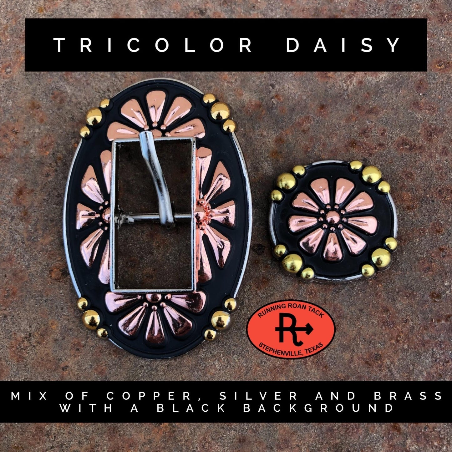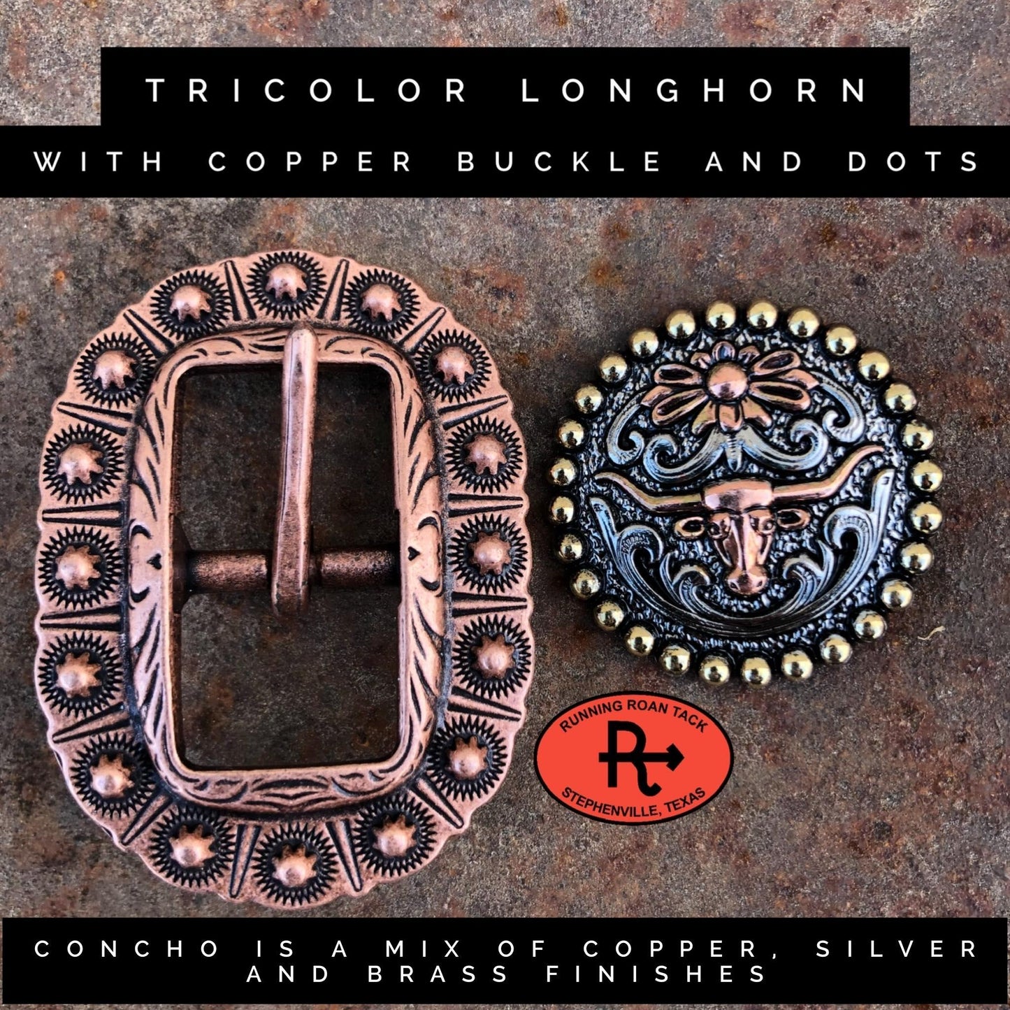 HARDWARE OPTIONS: Choose the conchos and buckles you'd like from the list above. You can conveniently view photos of all of the conchos/buckles on this page of our website: https://runningroantack.com/pages/buckles-conchos (opens in new tab/window)