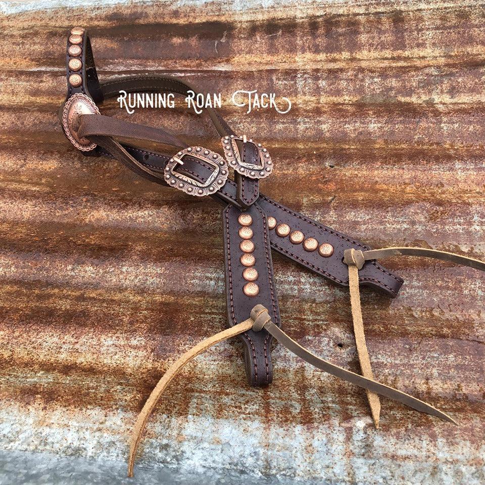 Single Ear Short Cheek Headstall with Punchy Slotted Mesa Conchos in Your Choice of Finish 29"-37"
