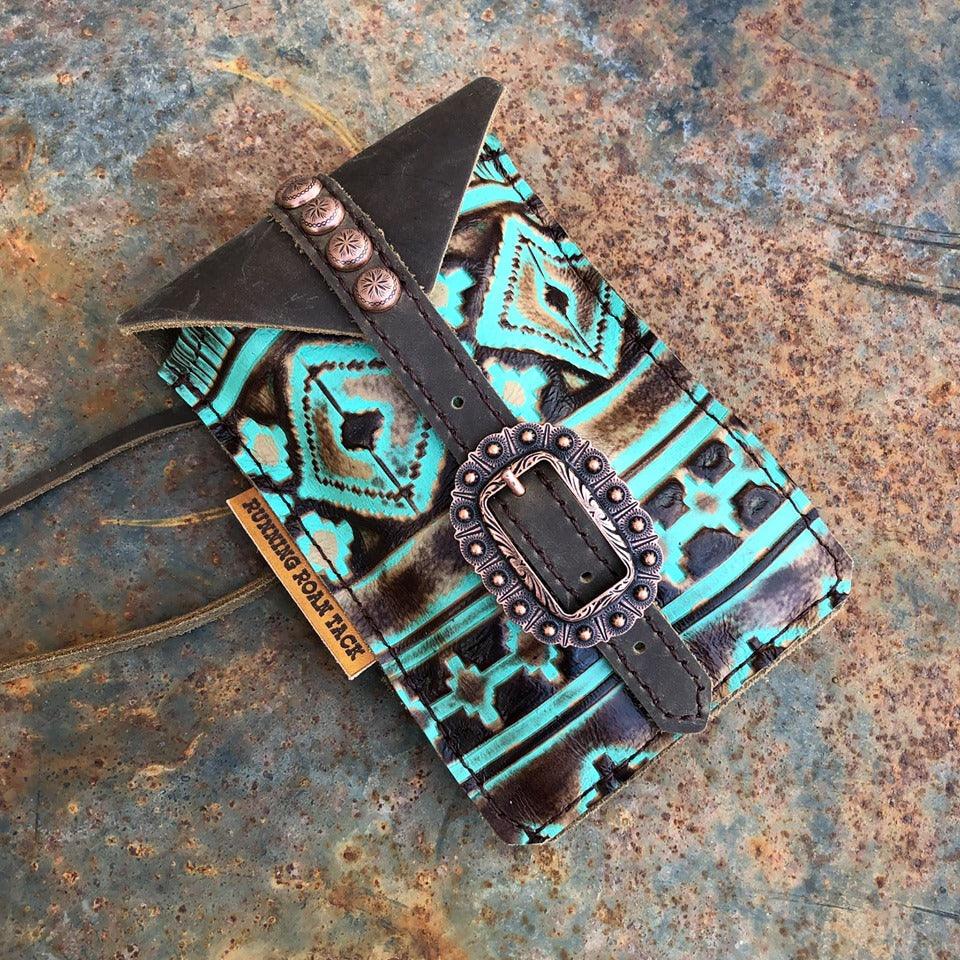 Tan Aztec Mini Saddle Bag with Your Choice of Buckle and Fringe for Phone, Keys, Roping Powder, etc