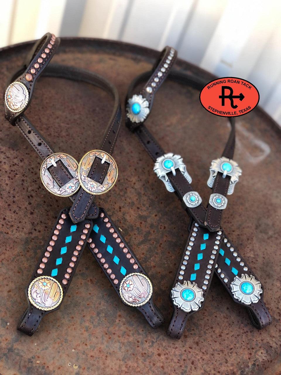 Turquoise Buckstitch Single Ear Short Cheek Headstall with Your Choice of Hardware 29"-37"