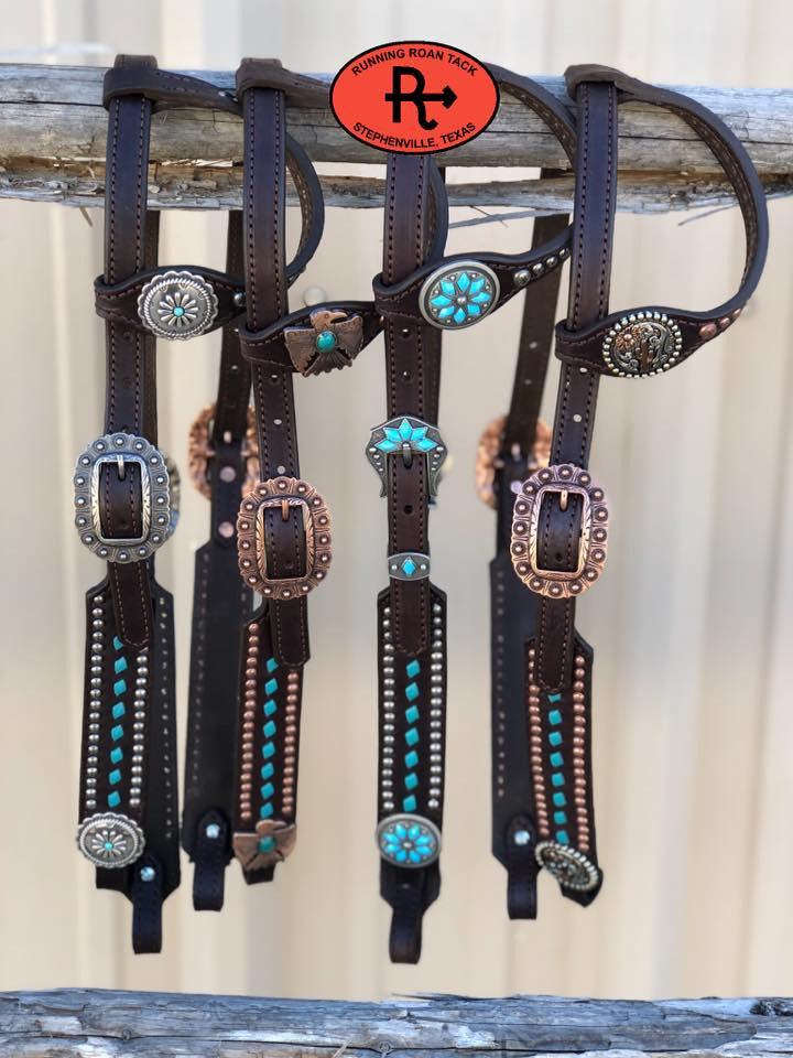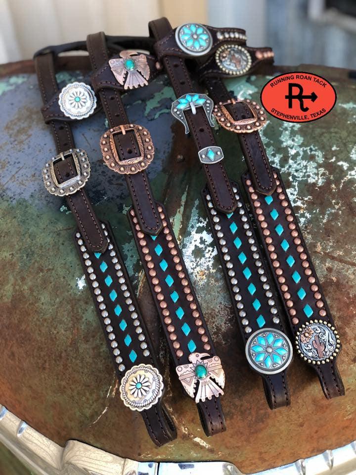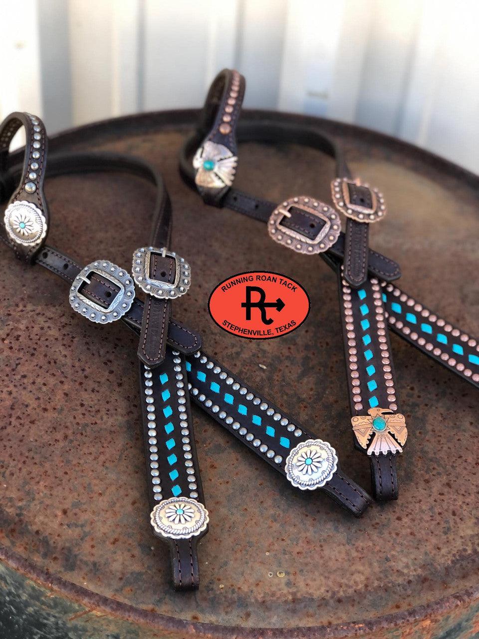 Turquoise Buckstitch Single Ear Headstall with Your Choice of Hardware 36"-43"