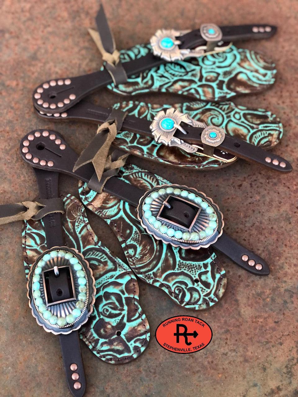 Turquoise Floral Buckaroo Spur Straps with Your Choice of Buckles