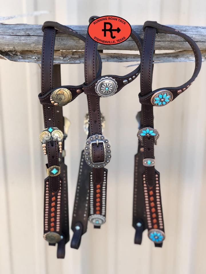 HARDWARE OPTIONS: Choose the conchos and buckles you'd like from the list above. You can conveniently view photos of all of the conchos/buckles on this page of our website: https://runningroantack.com/pages/buckles-conchos (opens in new tab/window)